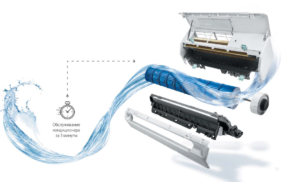 - Функцию монтажных двигателей воздуха, дисплей, электропитания, систему Quickness, которая позволяет легко и просто разобрать внутренний блок, получив доступ к самым труднодоступным и загрязненным частям для моментальной очистки.