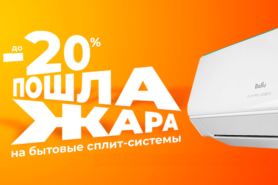 ПОШЛА ЖАРА! Скидки до -20% на бытовые сплит-системы настенного типа